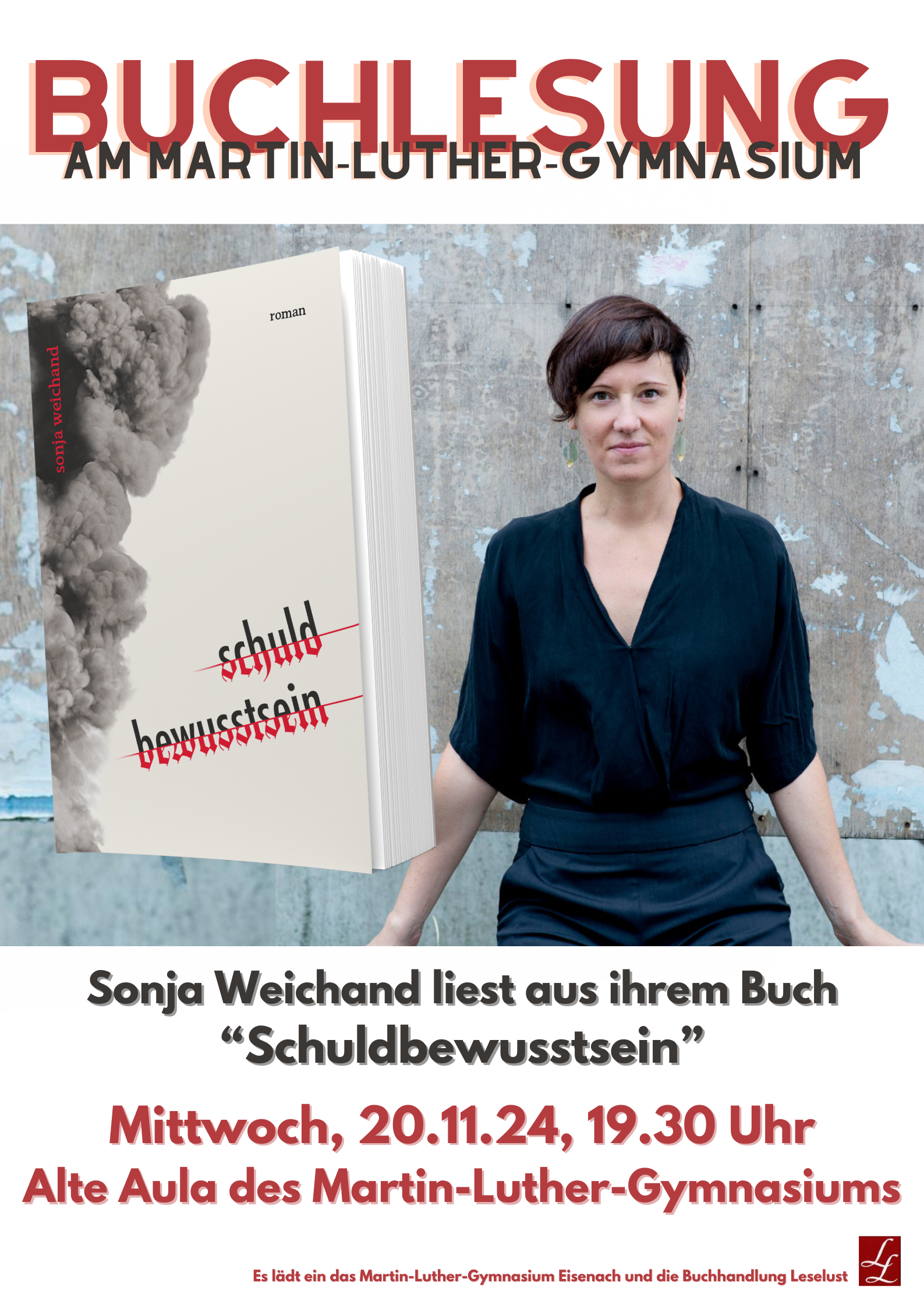 AM 20. November kommt Sonja Weichand an die Schule, um aus ihrem Buch "schulbewusstsein" zu lesen. Gemeinsam mit der Buchhandlung "Leselust" lädt das Martin -Luther-Gymnasium ab 19:30 Uhr in die Alte Aula ein.